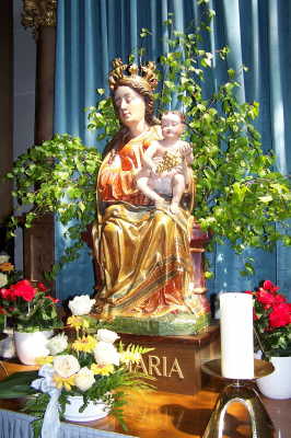 Diese Figur wird nur bei besonderen Anlässen (hier anläßlich der ersten hl.Kommunion) vor dem rechten Seitenaltar ausgestellt.
