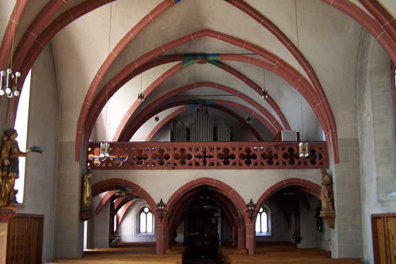 Blick vom Altarraum Richtung Eingang und Orgel.